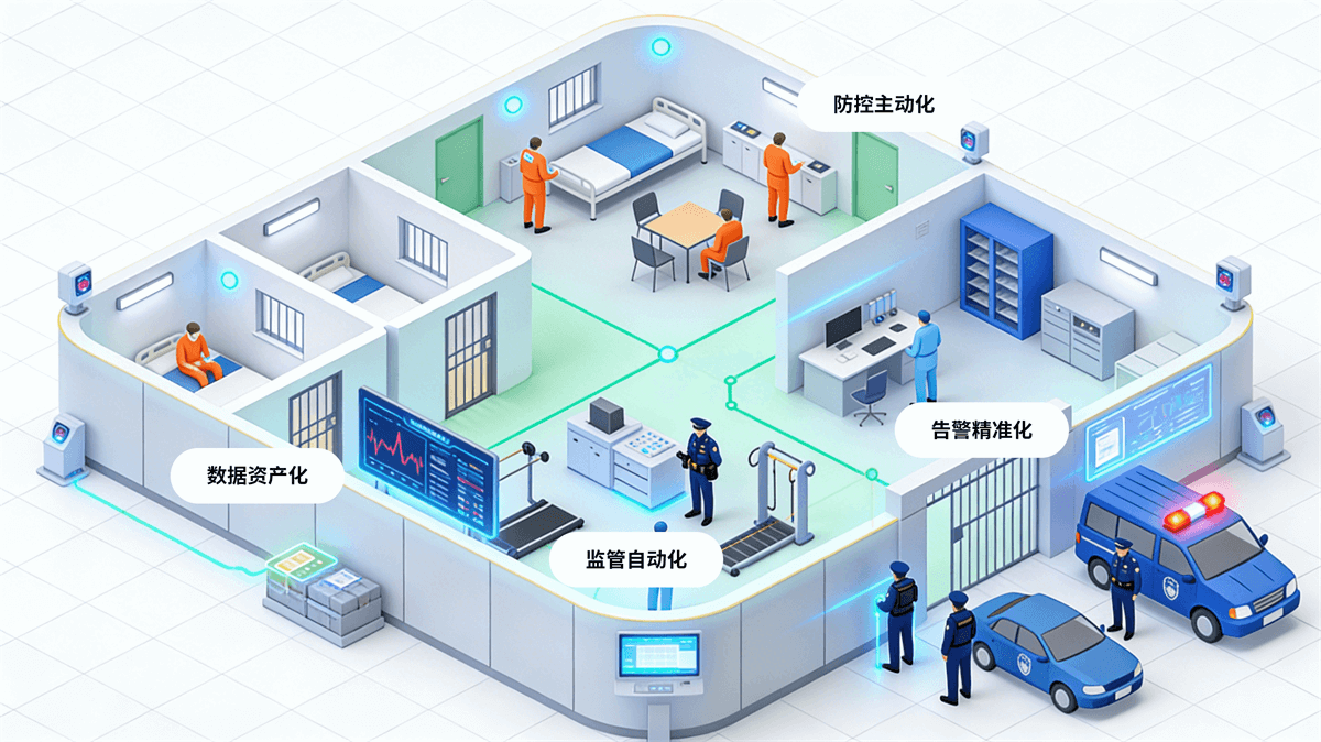 基于4W(When/Who/Where/What)核心理念,融合高精度定位、智能传感与物联网技术,构建办案全流程闭环管控体系。