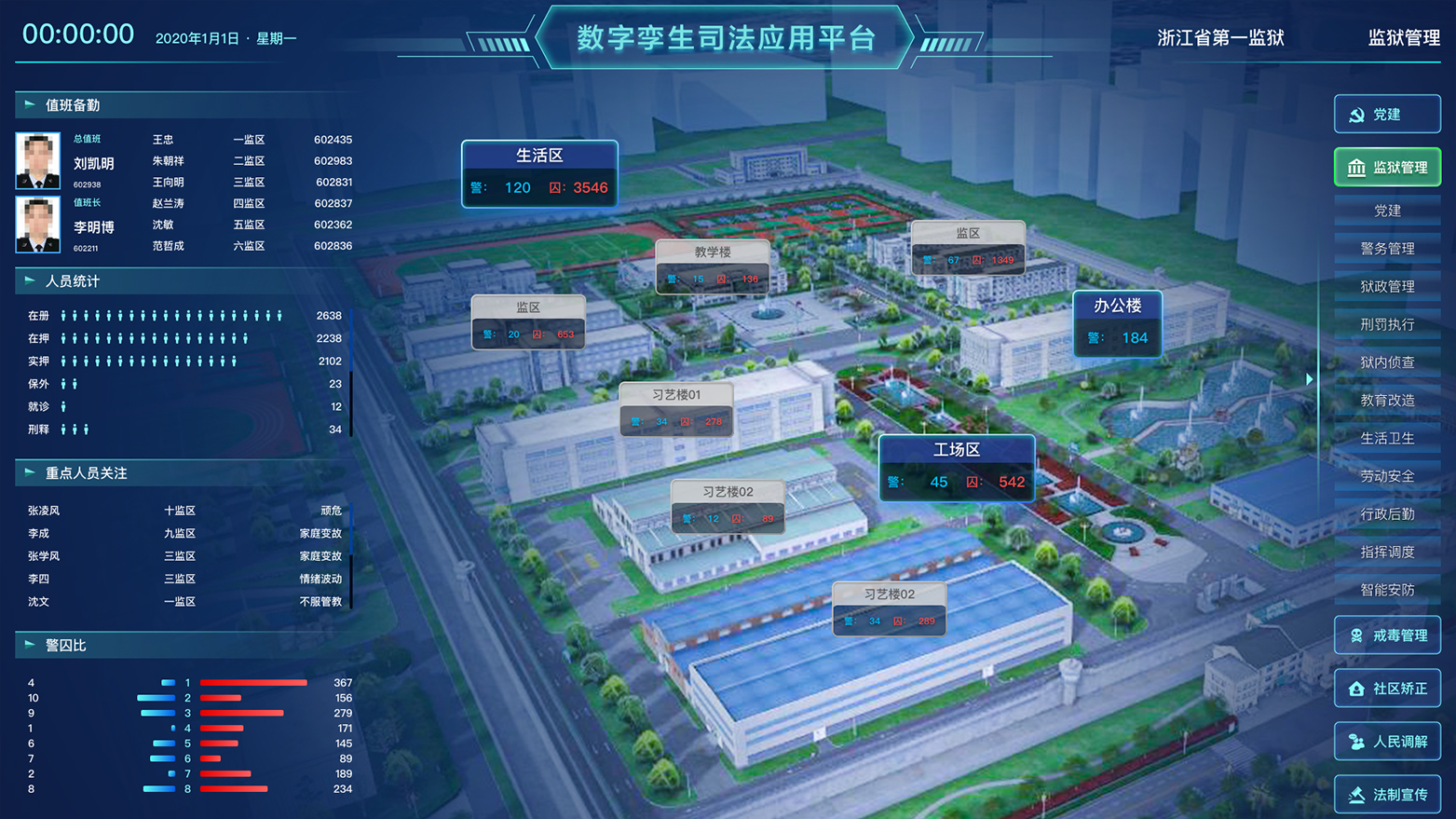 通过高精度定位技术,实现对人员、物资的实时位置追踪与轨迹还原,构建监所数字孪生体,让监管态势一目了然。