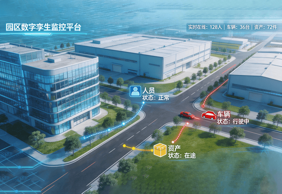 通过为人员、车辆、资产部署定位终端,系统可在园区数字孪生地图上实时呈现其位置、状态与移动轨迹,彻底改变传统“人找物”、“人管人”的被动模式,实现全域要素一目了然。