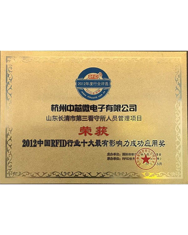 2012年中国RFID行业十大最有影响力成功应用奖