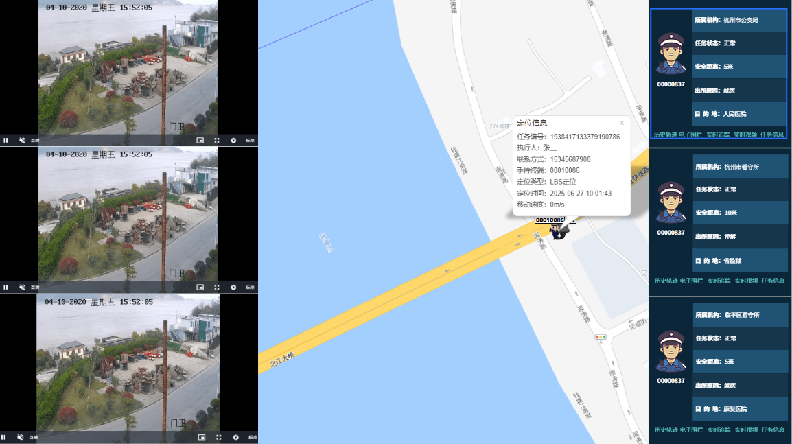 轨迹回溯与视频联动:平台自动记录人员历史轨迹,支持回放;指挥管理中心也可接入执法记录仪拍摄的音视频信息,实现对押解现场的实时查看与记录。